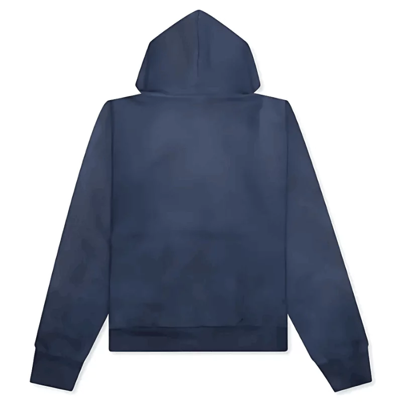 The navy colorway anchors the hoodie’s visual identity with a specificity that reflects careful design consideration. Navy carries its own cultural and aesthetic associations within the streetwear context, and Saint Michael has engaged with these associations deliberately — choosing a shade and application that positions this hoodie within the broader narrative of the brand’s visual program while maintaining the individual character that makes each piece worth owning independently.