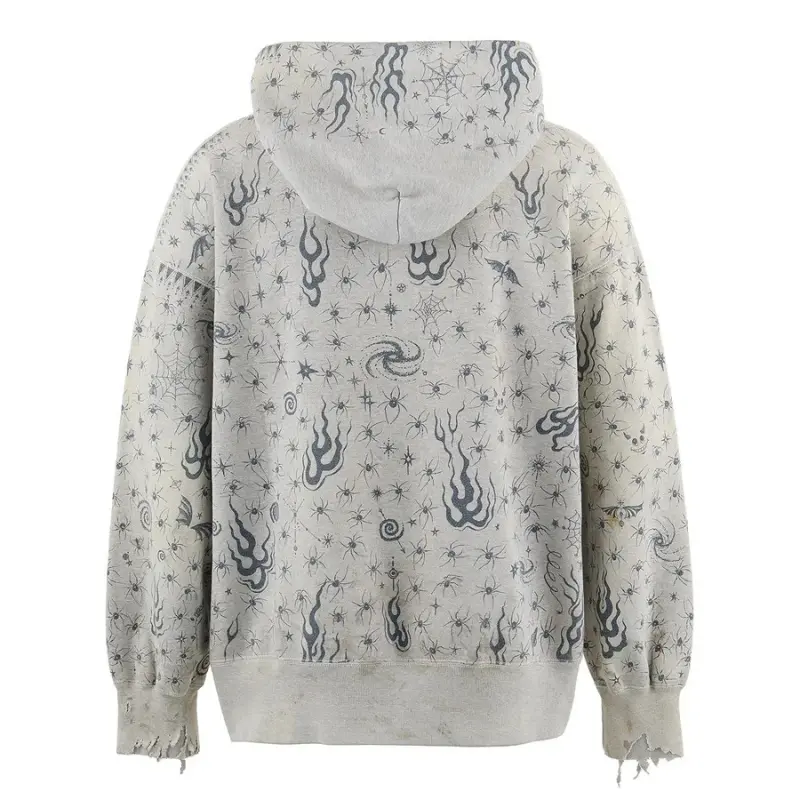 Saint Michael’s graphic program for this specific hoodie has been developed with the understanding that every design element needs to earn its presence on the garment. Whether the graphic is a standalone motif or part of a more complex visual composition, it has been scaled, positioned, and applied with attention to how it interacts with the black ground, the hoodie’s construction seams, and the viewer’s experience of the piece from different distances and angles. The graphic application is executed with techniques that ensure longevity through regular use.