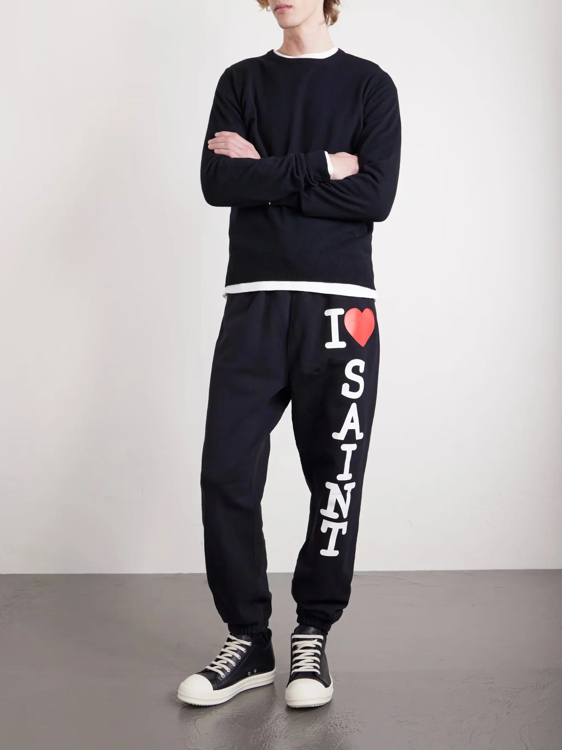 SAINT Michael I Love Saint Tapered Printed Cotton-Jersey Sweatpants