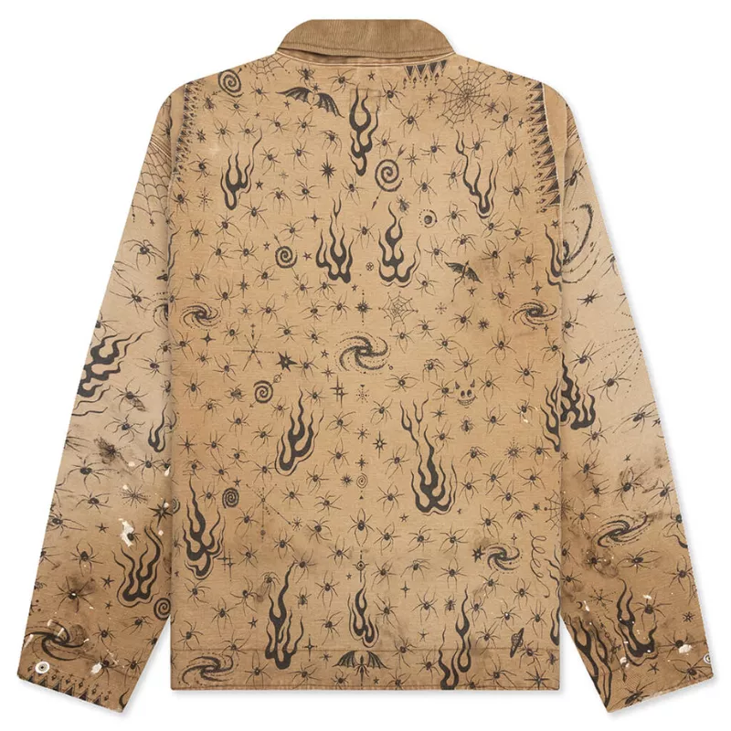 When Saint Michael chose to collaborate with Dr. Woo — one of the most celebrated tattoo artists working today — the result was inevitably going to be something that operates outside conventional streetwear categories. The Saint Michael X Dr. Woo Mx6 Detroit Jacket Beige proves that expectation correct, delivering a piece that draws on the intricate artistry of fine-line tattooing and combines it with the cultural authority of the Saint Michael brand in a jacket that is, simply put, unlike anything else available.